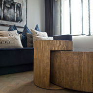 El proyecto de interiores de este departamento se conceptualizó para mantener de manera sobria y elegante el estilo arquitectónico del mismo. Se utilizaron colores cálidos en los muebles, así como telas ligeras. Las cortinas de lino belga le dan un toque de frescura singular a los espacios. Cada mueble fue fabricado a la medida con materiales únicos